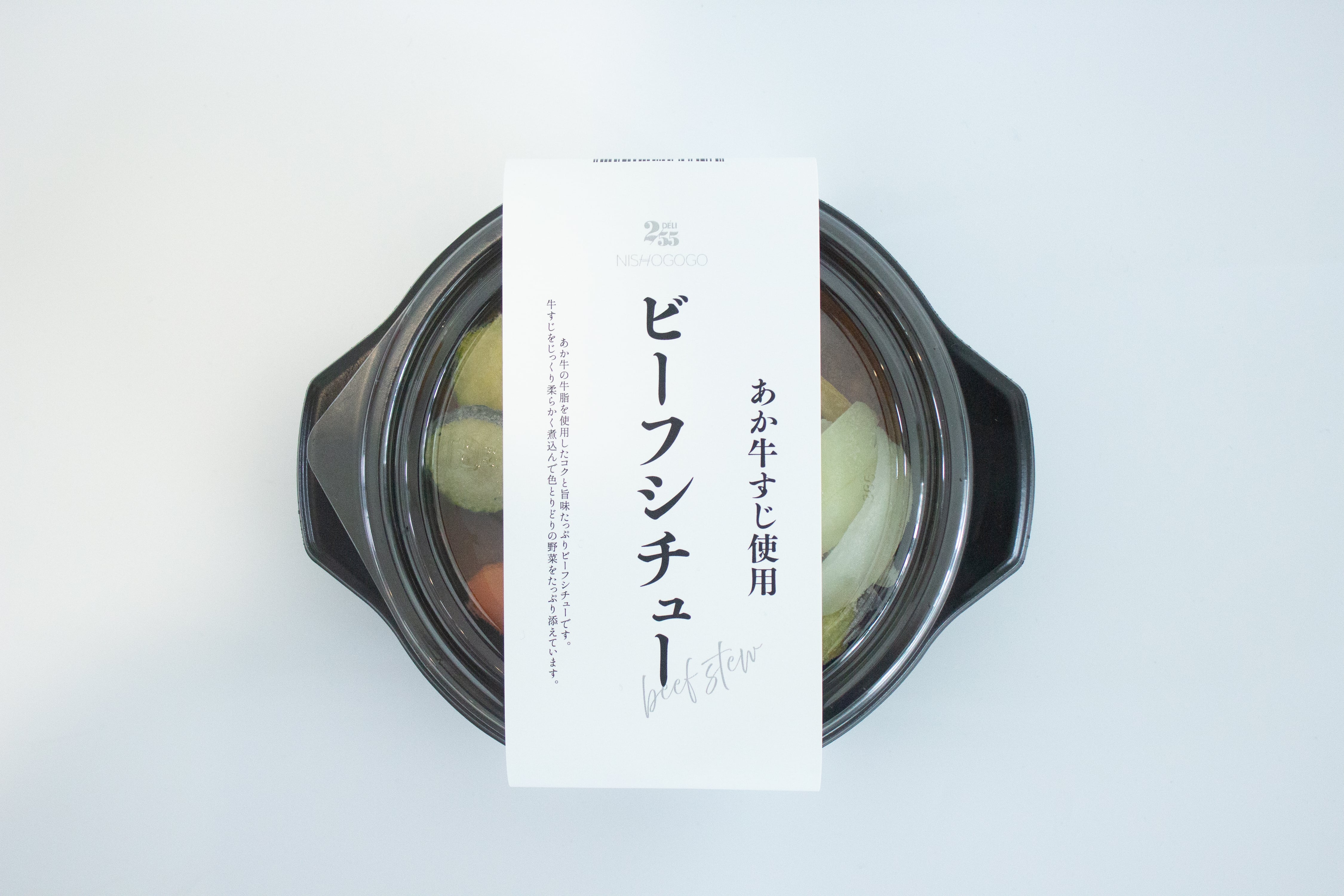 牛すじ(熊本県産)、牛すじ(国産)、赤ワイン、トマトピューレ、バター、玉ねぎ、人参、ズッキーニ、ナス、ブロッコリー、小麦粉、ラード、ビーフ風味エキス、砂糖、食塩、香辛料、ポークエキス、たん白加水分解物、酵母エキス / 着色料(カラメル)、増粘剤(加工デンプン)、調味料(アミノ酸等)、(一部に乳成分・小麦・牛肉・大豆・豚肉を含む)