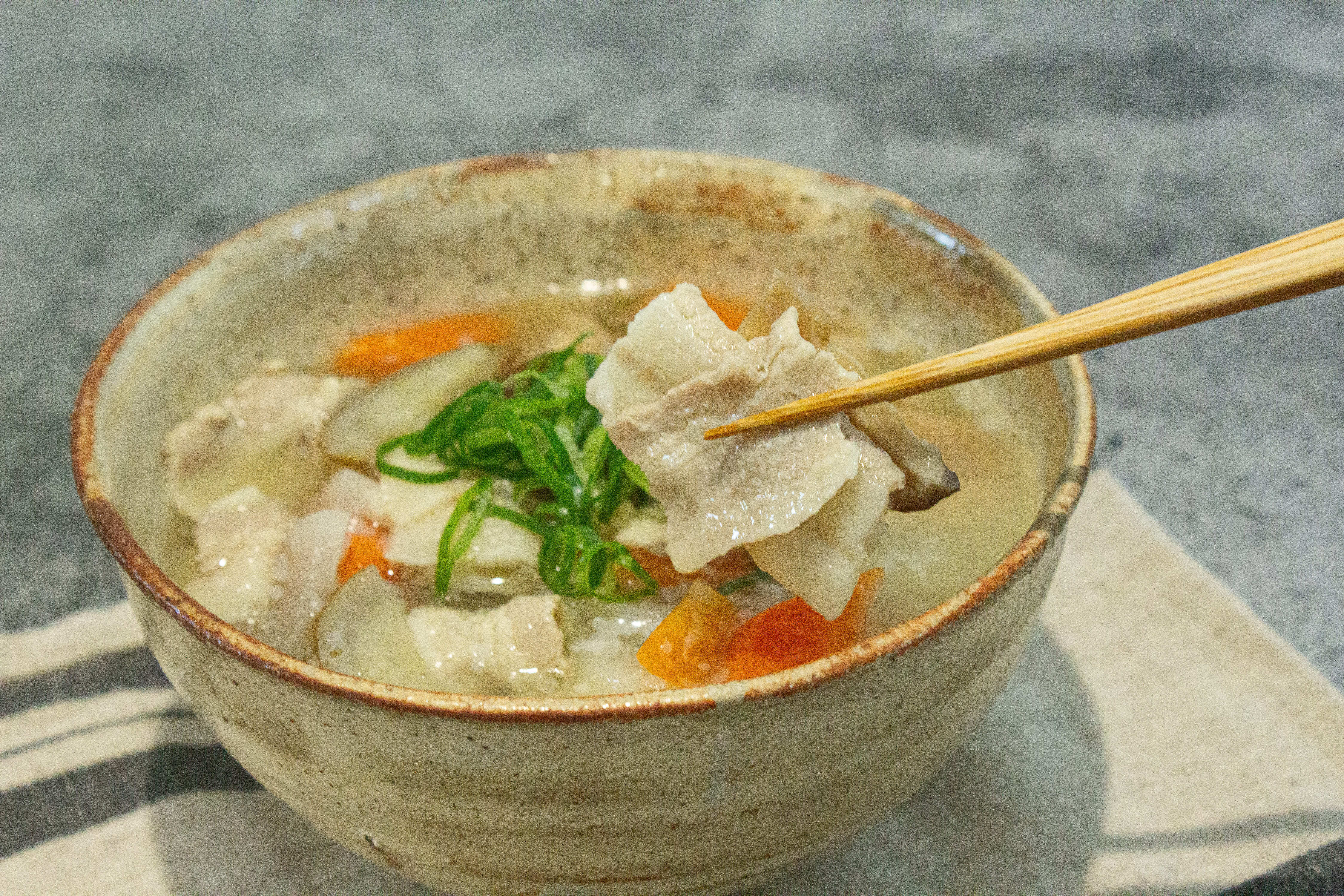 くまもとりんどうポークの豚汁は、熊本県産の新鮮な豚肉を贅沢に使用し、九州味噌の深い味わいを活かした心温まる一品です。